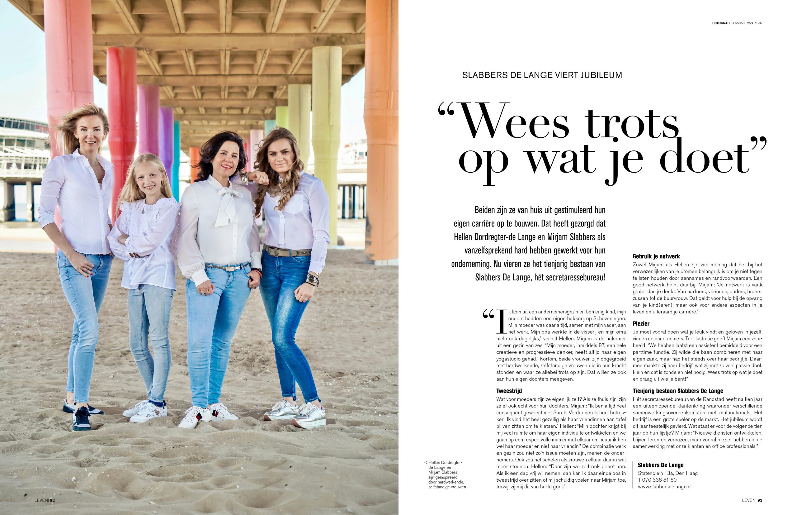 Beiden zijn ze van huis uit gestimuleerd hun eigen carrière op te bouwen. Dat heeft gezorgd dat Hellen Dordregter-de Lange en Mirjam Slabbers als vanzelfsprekend hard hebben gewerkt voor hun onderneming. Nu vieren ze het tienjarig bestaan van Slabbers De Lange, hét secretaressebureau! Hoe kijken ze daar op terug en wat zijn hun ambities voor de komende tien jaar? Je leest het in het artikel in de zomer editie van LEVEN! Magazine.
